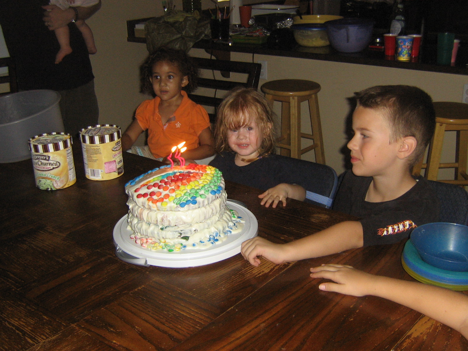 And this is the half eaten cake. It was enjoyed by all and everyone really loved the colors. This picture does not do justice to it at all. This cake actually looks very vibrant and almost like a tie-dye shirt.